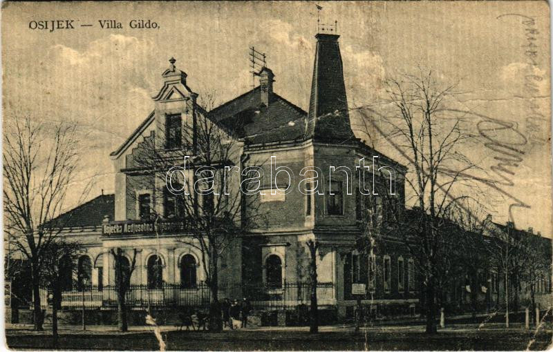 Beschreibung: Eszék, Essegg, Osijek; Villa Gildo / Osjecka Medjusobna Kripom. (szakadás / tear)