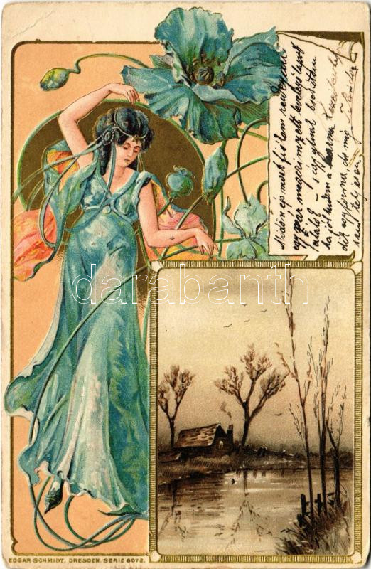 1902 Szecessziós, dombornyomott litho hölgy / Art Nouveau, embossed la... https://www.darabanth.com/de/428-Fernauktion/428.0/Ansichtskarten/Kunstlerkarten~1500037/1902-Szecesszios-dombornyomott-litho-holgy-Art-Nouveau-embossed-lady-litho-Edgar-Schmidt-Ser~II2746251