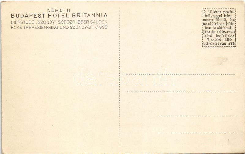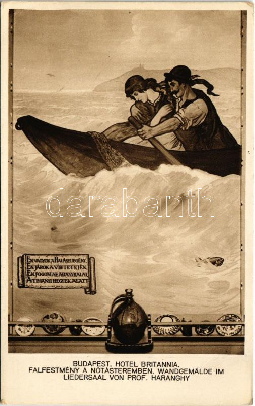 Budapesti Hotel Britannia, Szondy söröző falfestmény a Nótásteremben s... https://www.darabanth.com/de/428-Fernauktion/428.0/Ansichtskarten/Kunstlerkarten~1500037/Budapesti-Hotel-Britannia-Szondy-sorozo-falfestmeny-a-Notasteremben-s-Haranghy-EK~II2741983