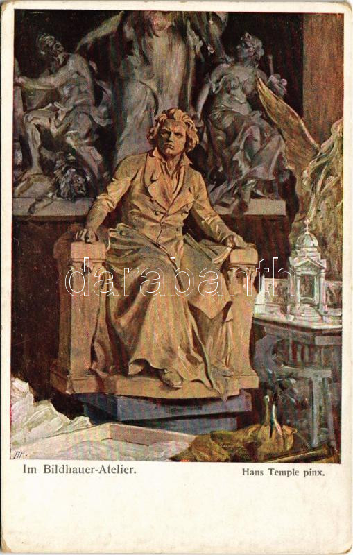 Beschreibung: Im Bildhauer-Atelier. Wiener Kunst B.K.W.I. Nr. 1306. s: Hans Temple (EK)