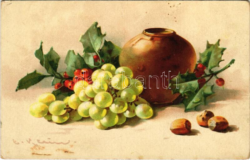 Still life art postcard with grapes s: C. Klein (fl) https://www.darabanth.com/de/428-Fernauktion/428.0/Ansichtskarten/Kunstlerkarten~1500037/Still-life-art-postcard-with-grapes-s-C-Klein-fl~II2738288