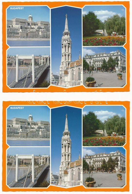 Beschreibung: Budapest - 5 db azonos modern képeslap díjjegy alsó részletének hiányával