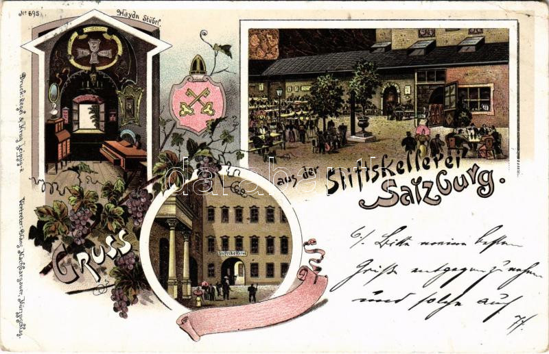 1897 (Vorläufer!) Salzburg, Gruss aus der Stiftskellerei. Haydn Stübel... https://www.darabanth.com/de/428-Fernauktion/428.0/Ansichtskarten/Osterreich~1500056/1897-Vorlaufer-Salzburg-Gruss-aus-der-Stiftskellerei-Haydn-Stubel-Regel-Krug-Art-Nouveau-~II2736271