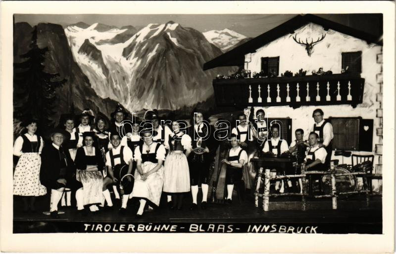 Innsbruck (Tirol), Tirolerbühne Blaas / Tyrolean folklore group. photo https://www.darabanth.com/de/428-Fernauktion/428.0/Ansichtskarten/Osterreich~1500056/Innsbruck-Tirol-Tirolerbuhne-Blaas-Tyrolean-folklore-group-photo~II2742983