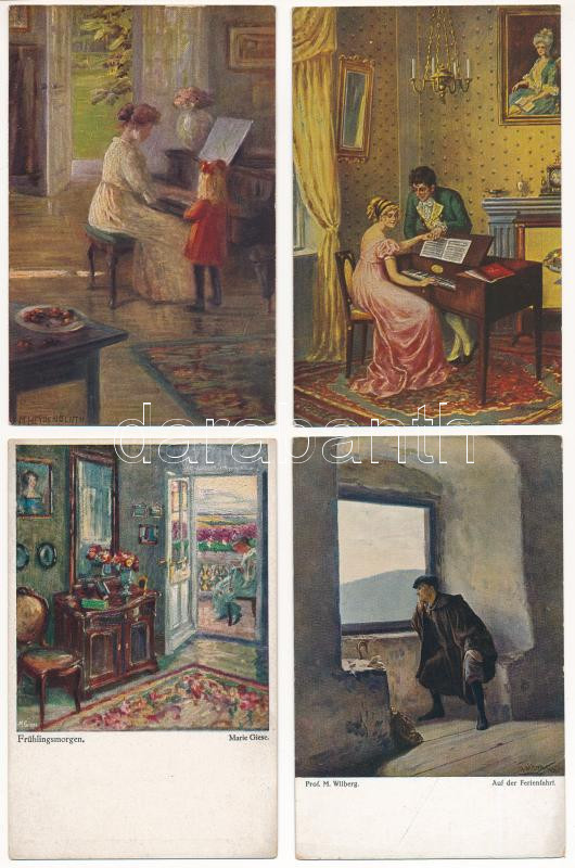 Beschreibung: 4 db RÉGI motívum képeslap: művészlapok / 4 pre-1945 motive postcards: art postcards