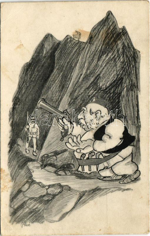 Beschreibung: 1914 Humoros első világháborús antant-ellenes grafikai lap / WWI Austro-Hungarian K.u.K. military propaganda, Anti-Entente Powers mocking humorous art postcard s: Biró (fl)