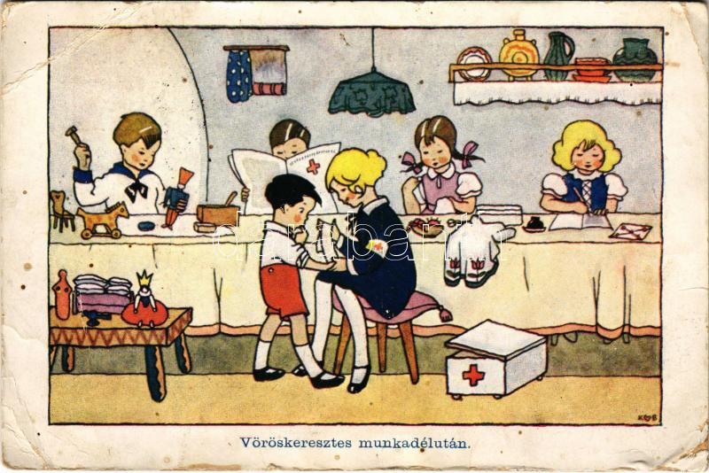 Vöröskeresztes munkadélután. A Magyar Ifjúsági Vöröskereszt Egyesület ... https://www.darabanth.com/de/428-Fernauktion/428.0/Ansichtskarten/Propaganda-Politik~1500040/Voroskeresztes-munkadelutan-A-Magyar-Ifjusagi-Voroskereszt-Egyesulet-kiadasa-Hungarian-~II2741960