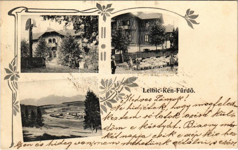 Beschreibung: 1907 Leibic, Leibicz, Leibitz, Lubica; nyaraló, fürdő, birkanyáj / spa, villa, bath, sheep. Art Nouveau