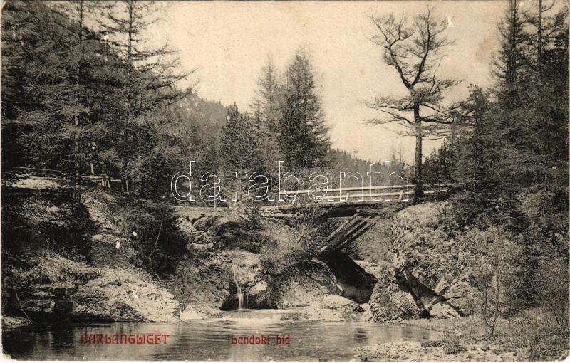 Beschreibung: 1908 Barlangliget, Höhlenhain, Tatranská Kotlina (Tátra, Magas Tátra, Vysoké Tatry); Landoki híd. Feitzinger Ede kitüntetett műkiadása 111. / wooden bridge by Lendak (EK)