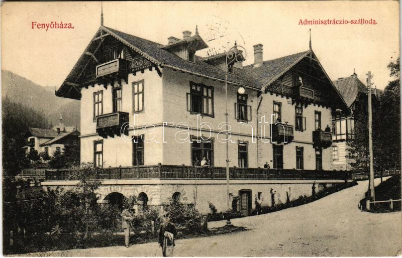 1908 Fenyőháza, Lubochna; Adminisztráció szálloda. Ébenhő Károly kiadá... https://www.darabanth.com/de/428-Fernauktion/428.0/Ansichtskarten/Slowakei~1500005/1908-Fenyohaza-Lubochna-Adminisztracio-szalloda-Ebenho-Karoly-kiadasa-hotel-EK~II2745822