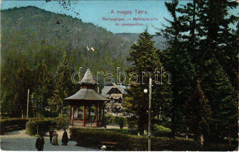 1911 Barlangliget, Höhlenhain, Tatranská Kotlina (Tátra, Magas Tátra, Vysoké Tatry); Nefelejts villa és zenepavilon / villa, music pavilion (ázott sarok / wet corner)