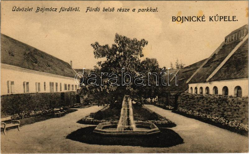 Bajmócfürdő, Bojnické kúpele (Bajmóc, Bojnice); Fürdő belső része a pa... https://www.darabanth.com/de/428-Fernauktion/428.0/Ansichtskarten/Slowakei~1500005/Bajmocfurdo-Bojnicke-kupele-Bajmoc-Bojnice-Furdo-belso-resze-a-parkkal-spa-bath~II2739068