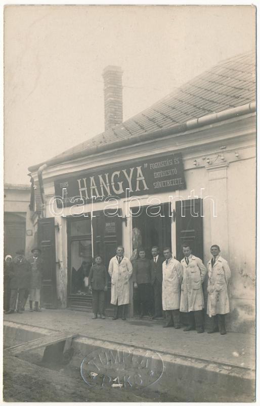 Beschreibung: 1923 Paks, Paks és Vidéke Hangya fogyasztási és értékesítő szövetkezete, üzlet bejárata dolgozókkal. Tumpek photo