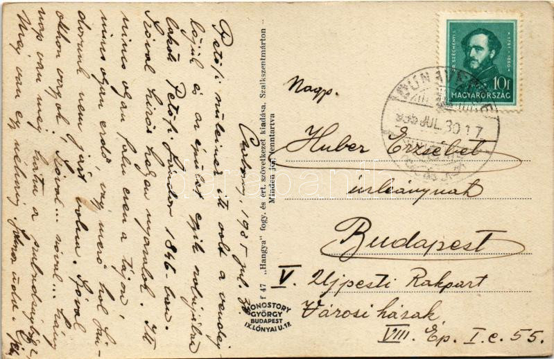 Beschreibung: 1935 Szalkszentmárton, Községi vendéglő, Petőfi lakóháza. Hangya szövetkezet kiadása. Hátoldalon Vasberényi Géza (1894-1981) Petőfi-kutató levele
