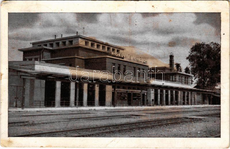 Beschreibung: 1938 Kiskunfélegyháza, pályaudvar, vasútállomás. Vesszősi József kiadása (EK)