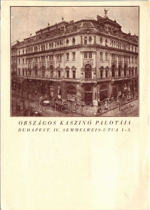 1939 Budapest V. Országos Kaszinó Palotája. Semmelweis utca 1-3. + "Az ellenforradalom és a nemzeti hadsereg születésének 20. évfordulója 1919-1939 Szeged" So. Stpl. (vágott / cut)