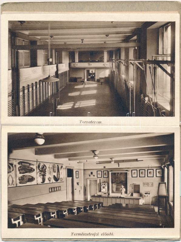 Beschreibung: Budapest V. Kegyesrendi Gimnázium, belsők - nem képeslapos leporellofüzet 21 lappal
