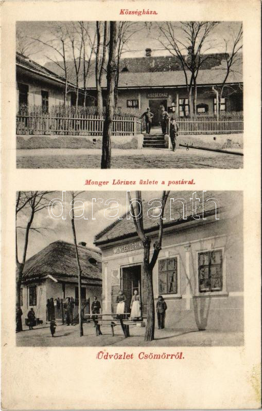 Csömör, Községháza, Posta, Monger Lőrinc üzlete és saját kiadása (fl) https://www.darabanth.com/de/428-Fernauktion/428.0/Ansichtskarten/Ungarn~1500003/Csomor-Kozseghaza-Posta-Monger-Lorinc-uzlete-es-sajat-kiadasa-fl~II2741346