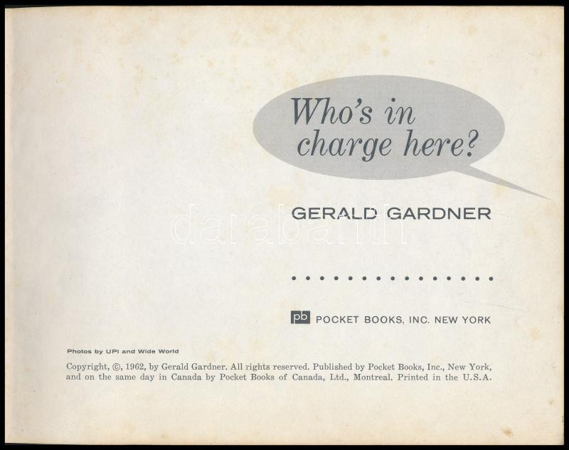 Gerald Gardner: Who's in charge here? New York, 1962,Pocket Books... https://www.darabanth.com/de/428-Fernauktion/428.0/Bucher/Bucher-Andere-Sprachen~1000021/Gerald-Gardner-Whos-in-charge-here-New-York-1962-Pocket-Books-Papirboritoval-jo-allapotba~II2741894