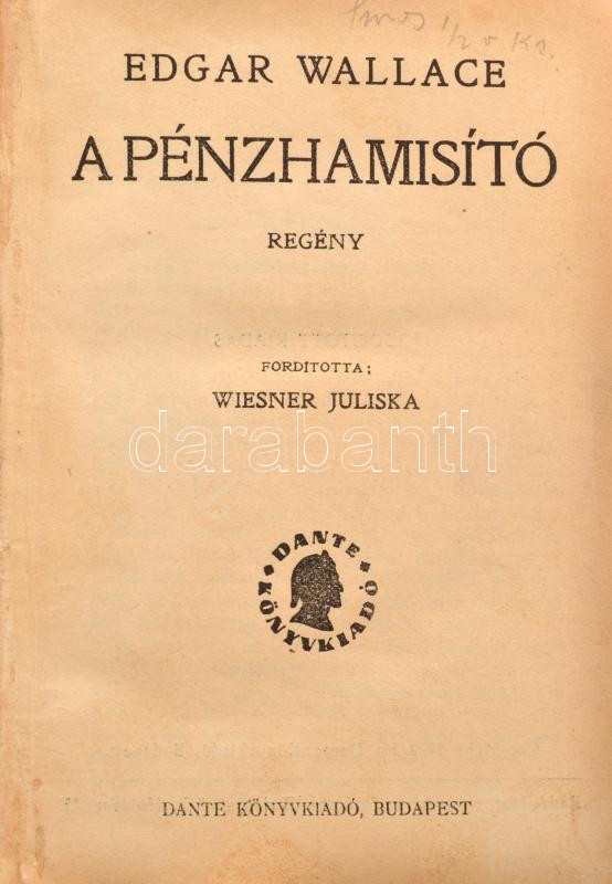 Edgar Wallace: A pénzhamisító. Regény. Ford.: Wiesner Juliska. Hozzákö... https://www.darabanth.com/de/428-Fernauktion/428.0/Bucher/Bucher-Andere-kuriositaten~1000026/Edgar-Wallace-A-penzhamisito-Regeny-Ford-Wiesner-Juliska-Hozzakotve-A-gorbe-gyertya-F~II2741780