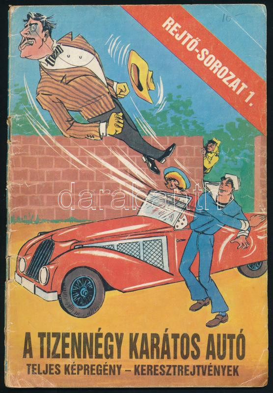 Beschreibung: Rejtő Jenő: Drótnélküli gyilkosság. hn., 1988., Göncöl. Kiadói papírkötés. + Rejtő képregénysorozat 2 kötete: A tizennégy karátos autó. Bradley Tamás visszaüt. Korcsmáros Pál rajzaival. Bp., 1983-1988., Ifjúsági. Kiadói papírkötés, kopott borítókkal, az egyik borító szakadt és benne tollas bejegyzésekkel a rejtvényeknél.