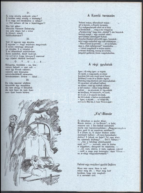 Simonyi Imre: Gyulai krétarajzok. Versek. Békéscsaba, 1976, Megyei Könyvtár, 4 sztl. lev. A rajzok Székelyhidi Attila munkái. Megjelent a Békés Megyei Könyvtár bibliofil sorozatának kiadásában, 250 példányban. Kiadói papírkötés, kiadói papír védőborítóban, jó állapotban. Számozott (141./250), a szerző által aláírt példány.