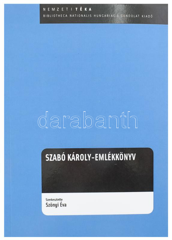 Szabó Károly-emlékkönyv. Szerk.: Szőnyi Éva. Nemzeti Téka. Bp., 2020, Magyar Könyvtárosok Egyesülete-Gondolat-OSZK. Kiadói papírkötés, jó állapotban. Könyvárusi forgalomba nem került.