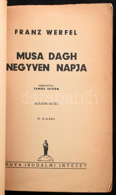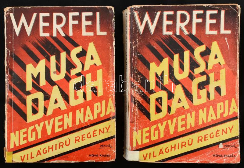 Werfel: Musa Dagh negyven napja I-II. Bp., Nova. Kiadói papírkötés, vi... https://www.darabanth.com/de/428-Fernauktion/428.0/Bucher/Bucher-Andere-kuriositaten~1000026/Werfel-Musa-Dagh-negyven-napja-I-II-Bp-Nova-Kiadoi-papirkotes-viseltes-allapotban~II2746782