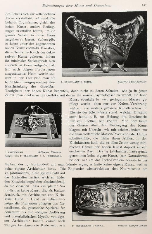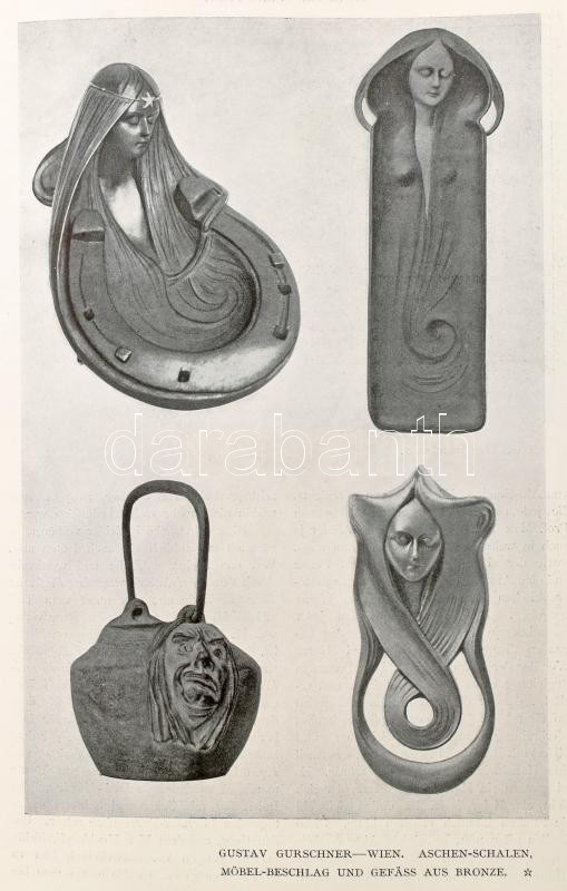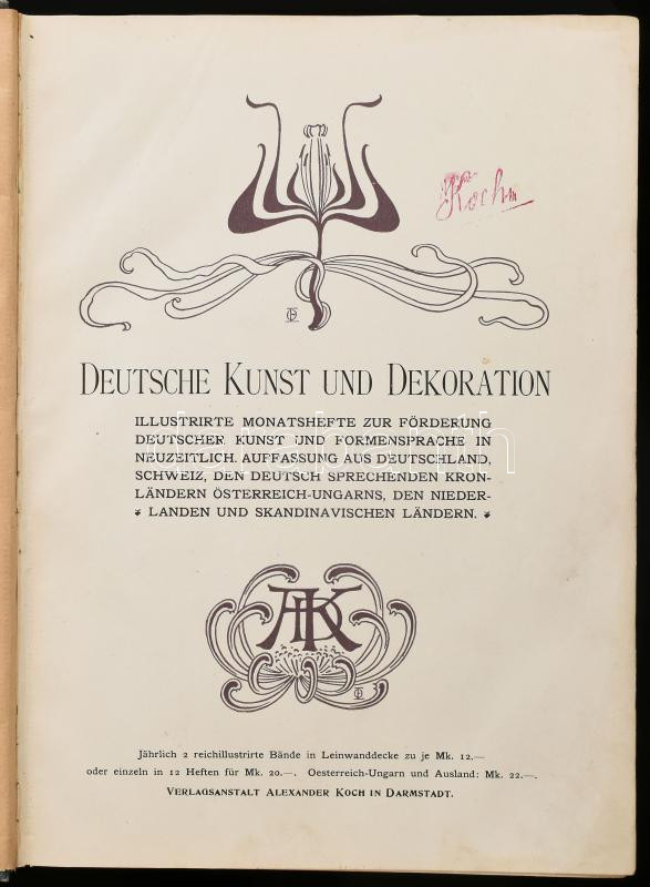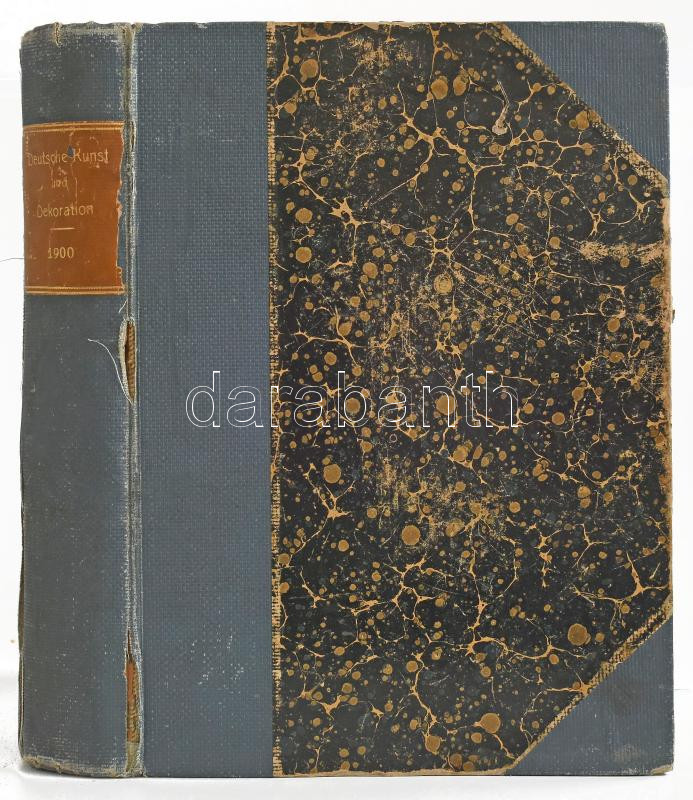 1900 Deutsche Kunst und Dekoration. IV. Jahrgang. Darmstadt, Alexander Koch. Német nyelven. Nagyon gazdag szecessziós kép- és reklámanyaggal, könyvdíszekkel illusztrált. Átkötött félvászon-kötés, kopott borítóval, sérült gerinccel, de belül jó állapotban.