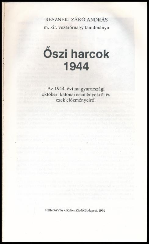 Reszneki Zákó András: Őszi harcok 1944. Bp., 1991, Kráter. Kiadói papí... https://www.darabanth.com/de/428-Fernauktion/428.0/Bucher/Bucher-Militaria~1000011/Reszneki-Zako-Andras-Oszi-harcok-1944-Bp-1991-Krater-Kiadoi-papirkotes-jo-allapotb~II2743876