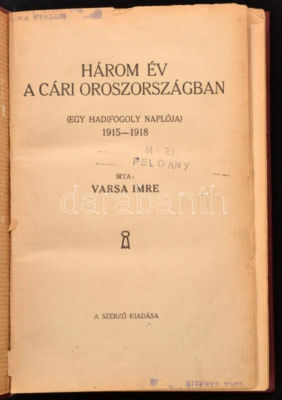 Varsa Imre: Három év a cári Oroszországban (Egy hadifogoly naplója) 19... https://www.darabanth.com/de/428-Fernauktion/428.0/Bucher/Bucher-Militaria~1000011/Varsa-Imre-Harom-ev-a-cari-Oroszorszagban-Egy-hadifogoly-naploja-1915-1918-Hn-en-Ujr~II2743870