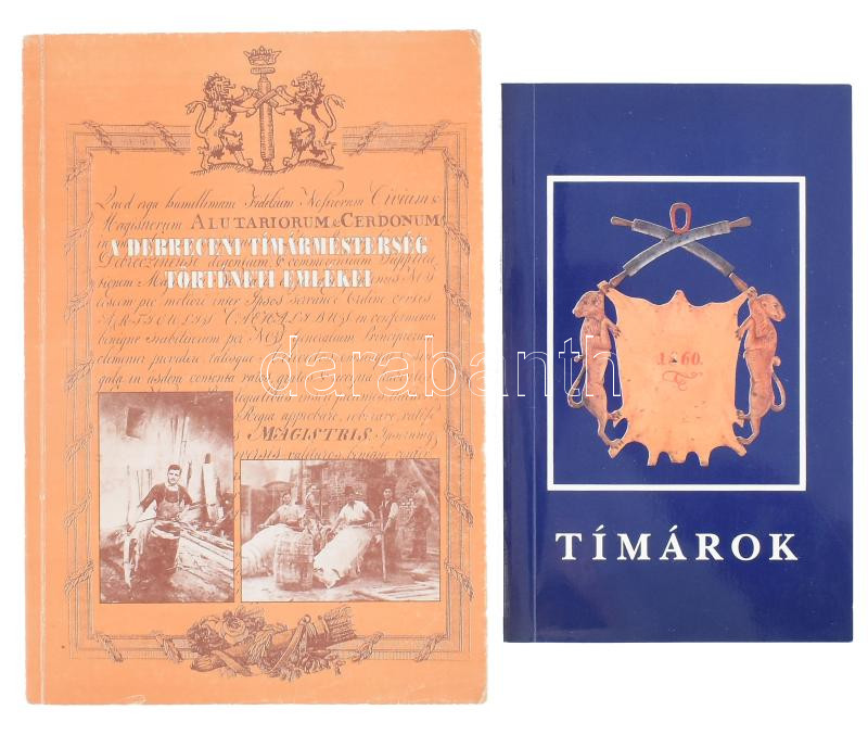 A debreceni tímármesterség történeti emlékei. Szerk.: Nagy Pál, V. Szathmári Ibolya. Karcag, Hajdú-Bihar M. Múzeumi Szervezet. Kiadói papírkötés, a borítón kis kopásnyomokkal, a hátsó borítón gyűrődésnyomokkal. Megjelent 500 példányban. + Flórián Mária - Tóth Béla: Tímárok. A bajai tímárműhely a Szabadtéri Néprajzi Múzeumban. Mesterségek Műhelyek 1.Szentendre, 1992., Szabadtéri Néprajzi Múzeum. Kiadói papírkötés.