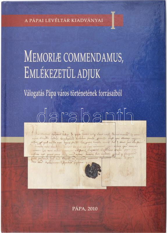 Memoriae Commendamus - Emlékezetül adjuk. Válogatás Pápa város történetének forrásaiból. Pápa, 2010. Kiadói kartonált kötés, jó állapotban.
