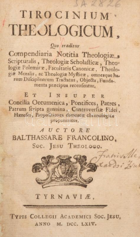 Francolino, Balthassare: Tirocinium Theologicum. Nagyszombat, 1744. Ka... https://www.darabanth.com/de/428-Fernauktion/428.0/Bucher/Bucher-Religion~1000020/Francolino-Balthassare-Tirocinium-Theologicum-Nagyszombat-1744-Kartonalt-kotes-kopottas-al~II2723911