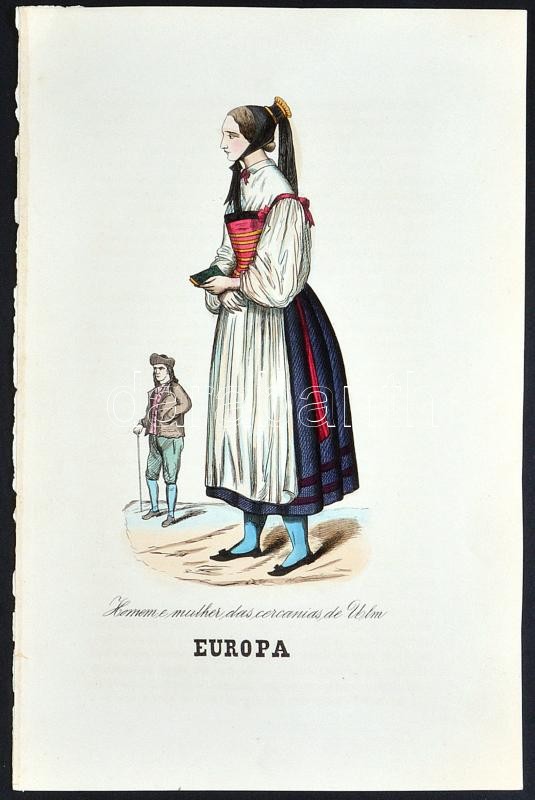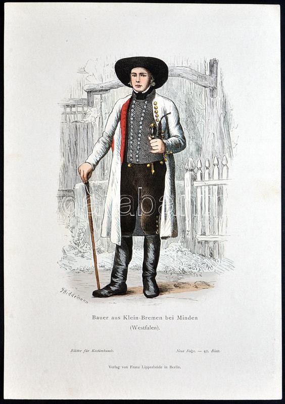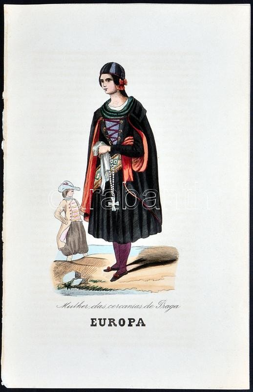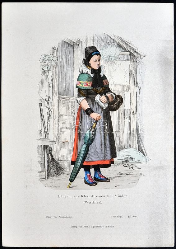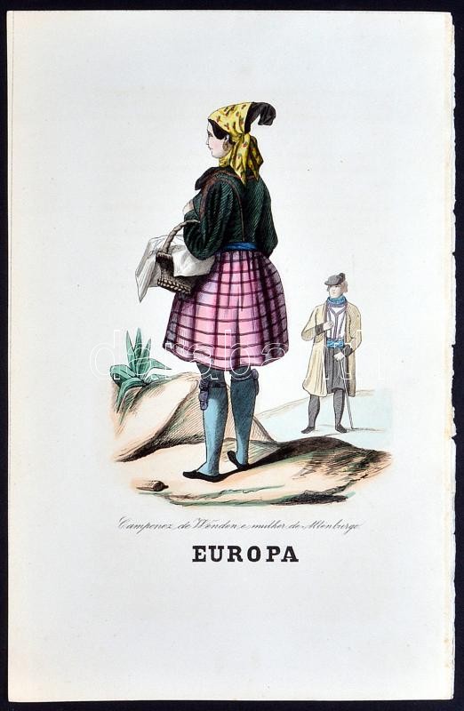 cca 1870 Népek - népviseletek. 11db színezett rézkarc, ill. rézmetszet /