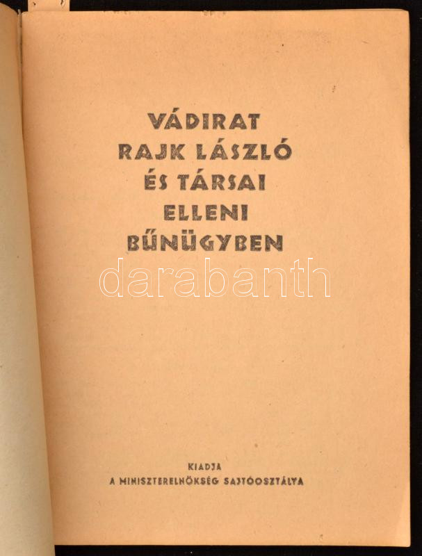 1949. Vádirat Rajk László és társai elleni bűnűgyben. Budapest 2. szám... https://www.darabanth.com/de/428-Fernauktion/428.0/Kunst-Dokumente-andere-Sammelgebiete/Drucksachen~1000004/1949-Vadirat-Rajk-Laszlo-es-tarsai-elleni-bunugyben-Budapest-2-szam-Kiadja-a-miniszterel~II2744292