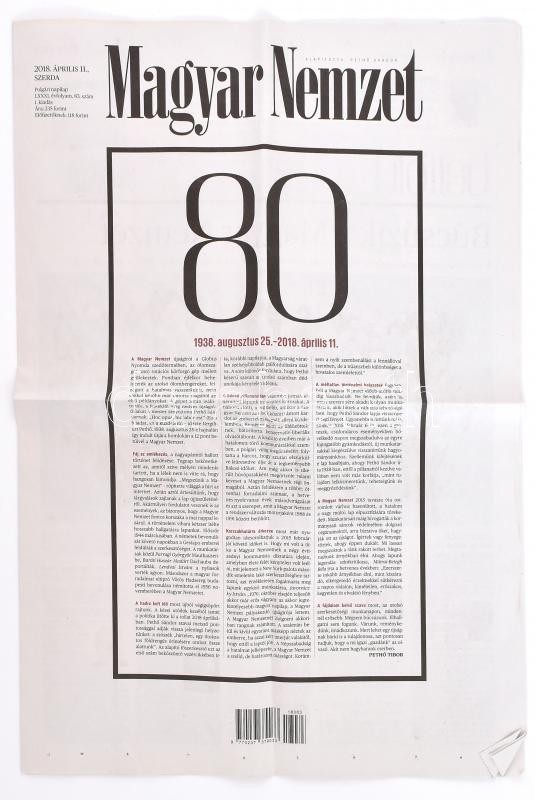 2018 A Magyar Nemzet utolsó lapszáma a teljes stáb leváltása előtt https://www.darabanth.com/de/428-Fernauktion/428.0/Kunst-Dokumente-andere-Sammelgebiete/Drucksachen~1000004/2018-A-Magyar-Nemzet-utolso-lapszama-a-teljes-stab-levaltasa-elott~II2473126