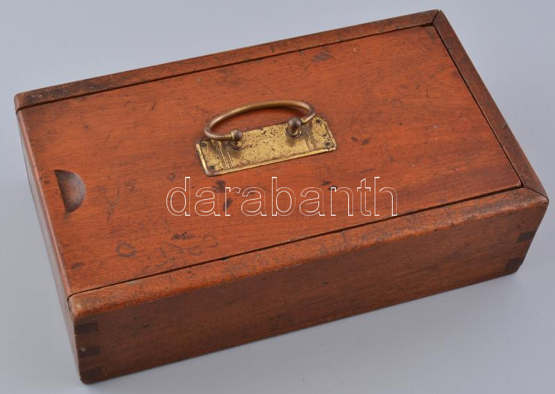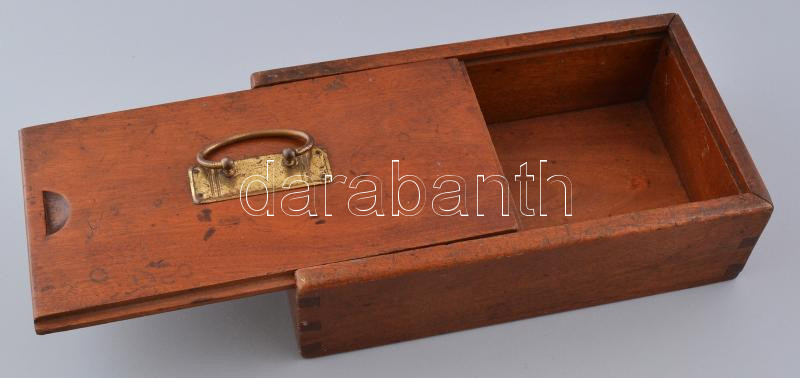 Régi barna fadoboz, fém fogantyúval, kihúzható fedéllel, kissé sérült,... https://www.darabanth.com/de/428-Fernauktion/428.0/Kunst-Dokumente-andere-Sammelgebiete/Flohmarkt~500012/Regi-barna-fadoboz-fem-fogantyuval-kihuzhato-fedellel-kisse-serult-kopott-8x16x28-cm~II2744325