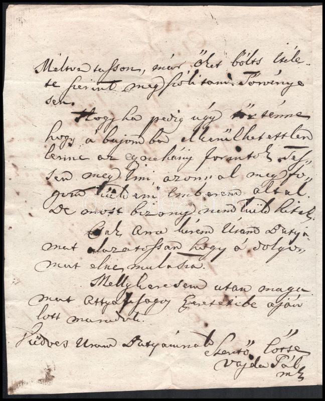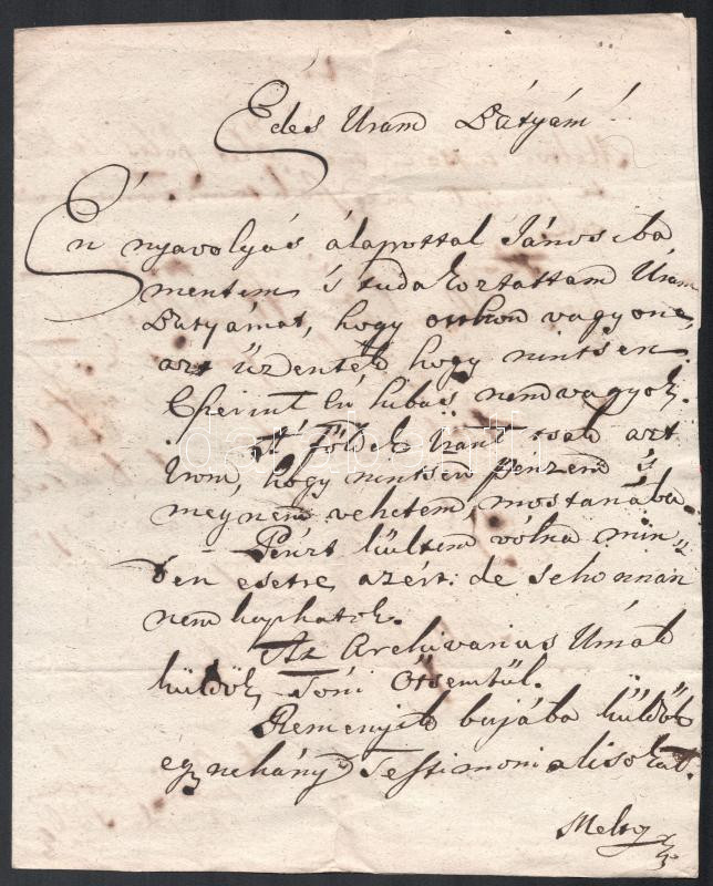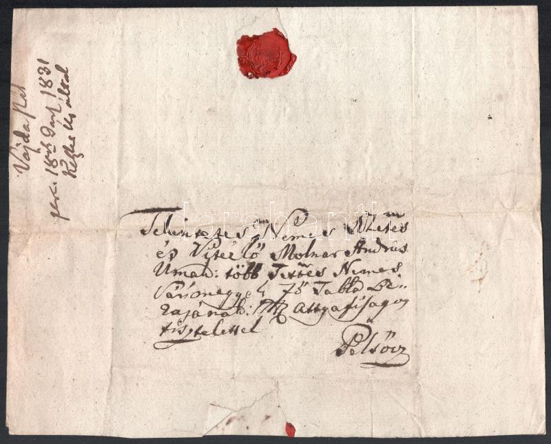 1831 Pelsöc Molnár András táblabírának írt magyar nyelvű levél pénzügyekről