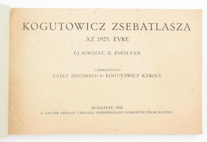 1922 Bp, Kogutowicz zsebatlasza az 1923. évre. Új sorozat, II. évfolya... https://www.darabanth.com/de/428-Fernauktion/428.0/Kunst-Dokumente-andere-Sammelgebiete/Landkarten~500029/1922-Bp-Kogutowicz-zsebatlasza-az-1923-evre-Uj-sorozat-II-evfolyam-Magyar-Neprajzi-Tarsas~II2740884