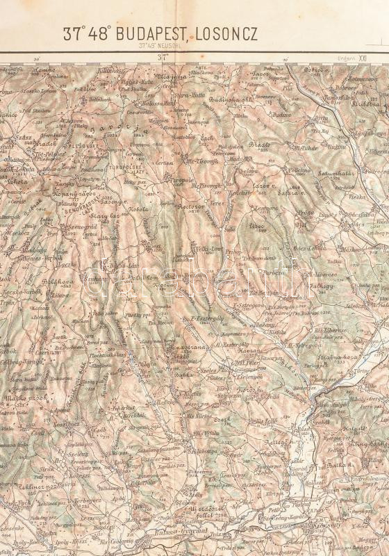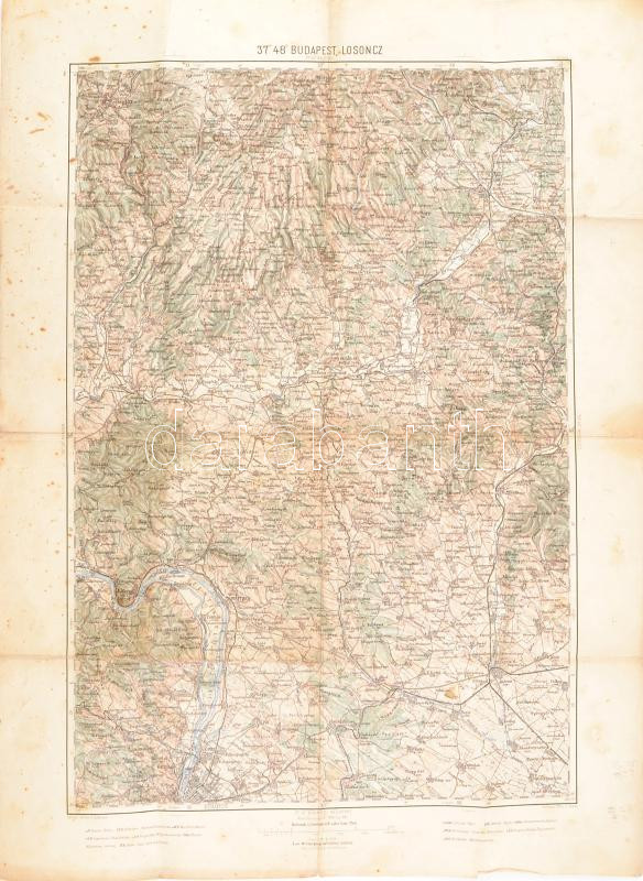 Budapest-Losoncz és környéke, német nyelvű katonai térkép, K. und k. Militärgeographisches Institut, 1:200000, kissé foltos, lap széle kissé sérült, 67×49 cm