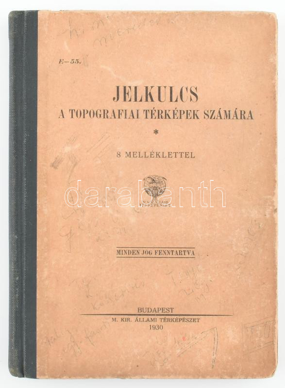 Jelkulcs a topografiai térképek számára. Bp., 1930, Magyar Királyi Állami Térképészet, 106 p. Félvászon kötésben, jó állapotban. 8 kihajtható melléklettel