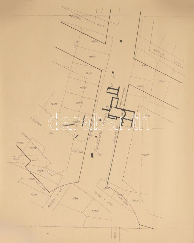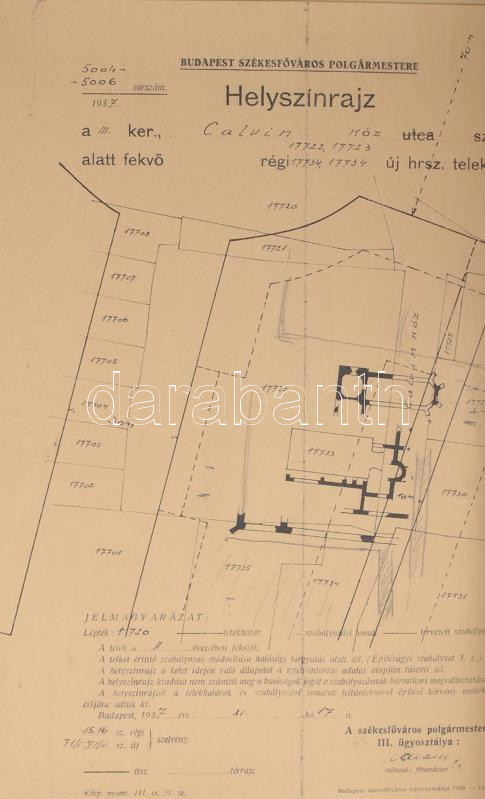 cca 1937 Óbuda, 4 db helyszínrajz, rajta különféle középkori (templom)romokkal és az amfiteátrummal, feltekerve, 32x30 cm, 37x29 cm, 36x28 cm, 36x30 cm
