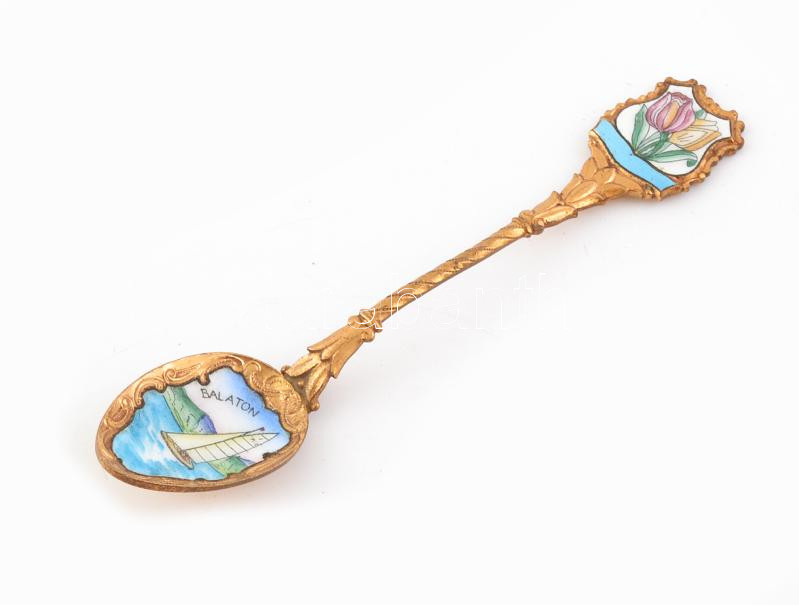 Zománcfestett Balaton emlék kanál. Fém 12 cm https://www.darabanth.com/de/428-Fernauktion/428.0/Kunst-Dokumente-andere-Sammelgebiete/Schiffe-Plattensee~500027/Zomancfestett-Balaton-emlek-kanal-Fem-12-cm~II2745259
