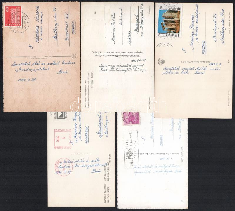 1961-1972 Mészáros József, beceneve "Dodó", a Kispest, majd a Ferencváros válogatott labdarúgója, későbbi mesteredző (1923-1997) lapjai a nagyvilágból, 12 db