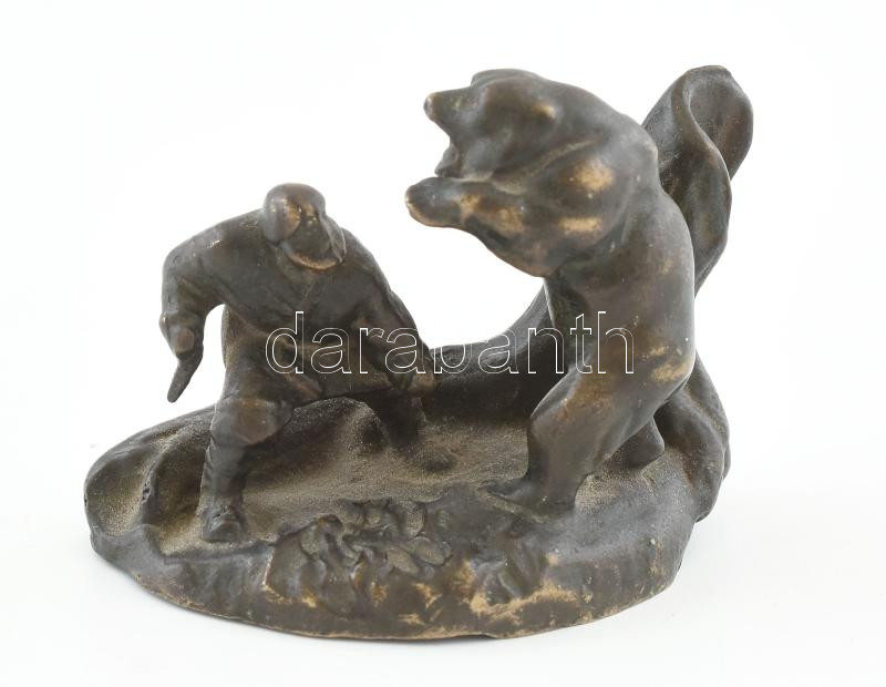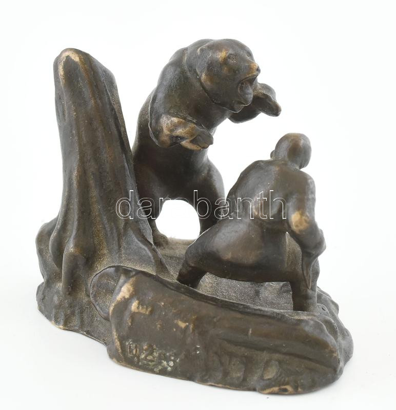 Jelzés nélkül: Medvevadász. Öntött, patinázott bronz, m: 6,5 cm