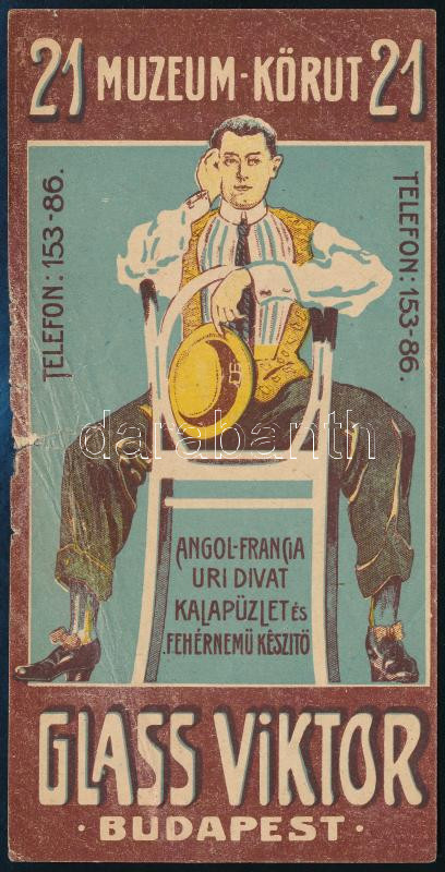 Glass Viktor úri divat számolócédula, gyűrődéssel, szakadással https://www.darabanth.com/de/428-Fernauktion/428.0/Kunst-Dokumente-andere-Sammelgebiete/Werbungen~500022/Glass-Viktor-uri-divat-szamolocedula-gyurodessel-szakadassal~II2742087