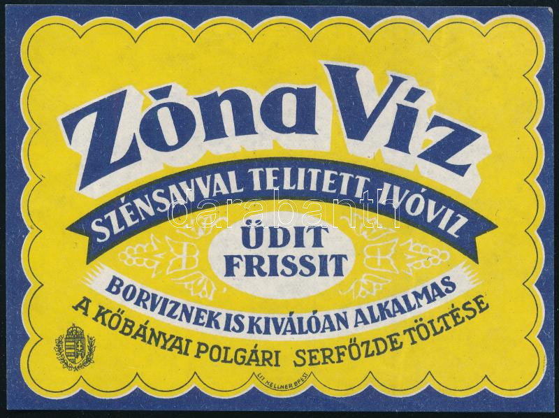 ZónaVíz Kőbányai Polgári Serfőzde címke https://www.darabanth.com/de/428-Fernauktion/428.0/Kunst-Dokumente-andere-Sammelgebiete/Werbungen~500022/ZonaViz-Kobanyai-Polgari-Serfozde-cimke~II2743264