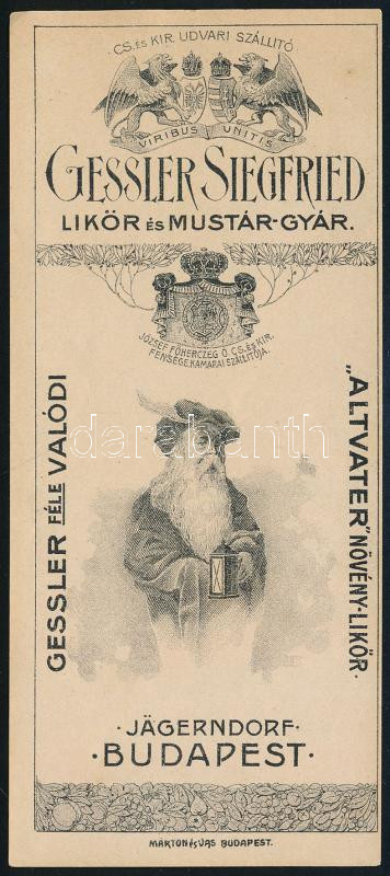 cca 1910 Gessler féle valódi "Altvater" nővényi likőr, Gessl... https://www.darabanth.com/de/428-Fernauktion/428.0/Kunst-Dokumente-andere-Sammelgebiete/Werbungen~500022/cca-1910-Gessler-fele-valodi-Altvater-novenyi-likor-Gessler-Siegfried-Likor-es-Mustargya~II2737982