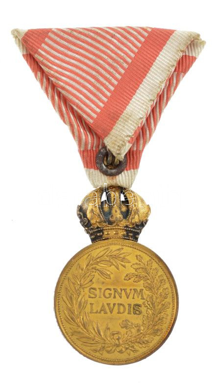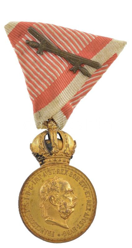 Hungary 1890. "Bronze Military Merit Medal on a war ribbon with swords" gold-plated bronze decoration on ribbon, with "Das Offizierskorps des BH. Infanterie Baons No. III/2" inscription on the edge C:AU patina